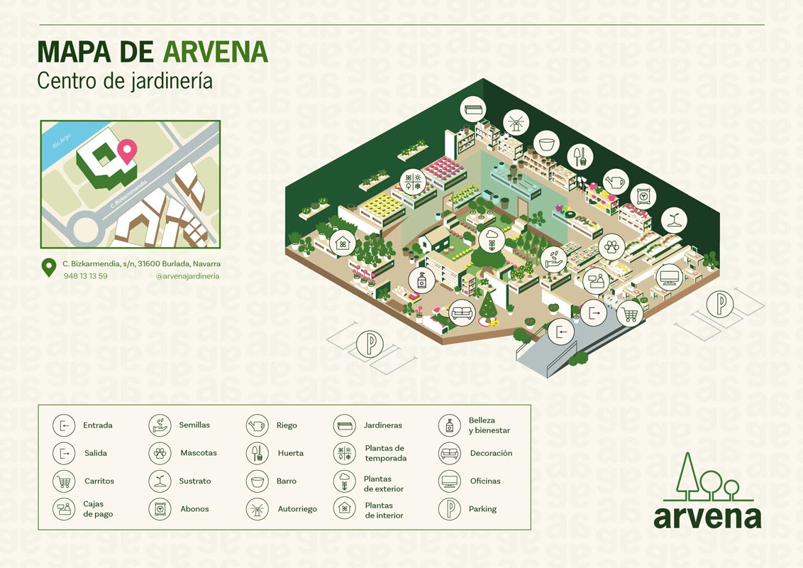 Para este trabajo se nos encargó no solo el rediseño de la marca de jardinería Arvena, si no que también se nos pidió que realizásemos un mapa 3D del establecimiento y sus diferentes zonas. Este trabajo fue realizado en grupo junto con las diseñadoras Marta Estanga, que se encargó de todo lo relacionado con la maquetación, y Jara Montero, que se encargó de la iconografía y el rediseño del logotipo. Mientras tanto yo realice la ilustración 3D del mapa.
